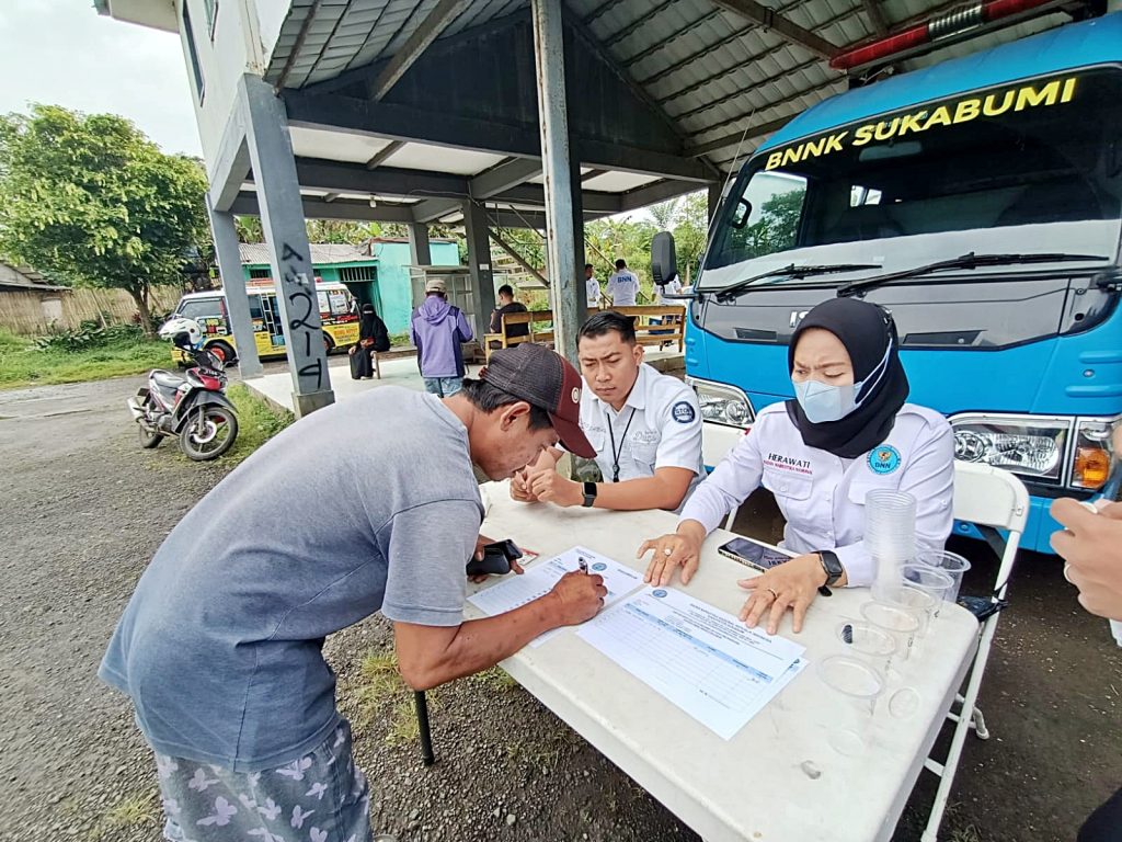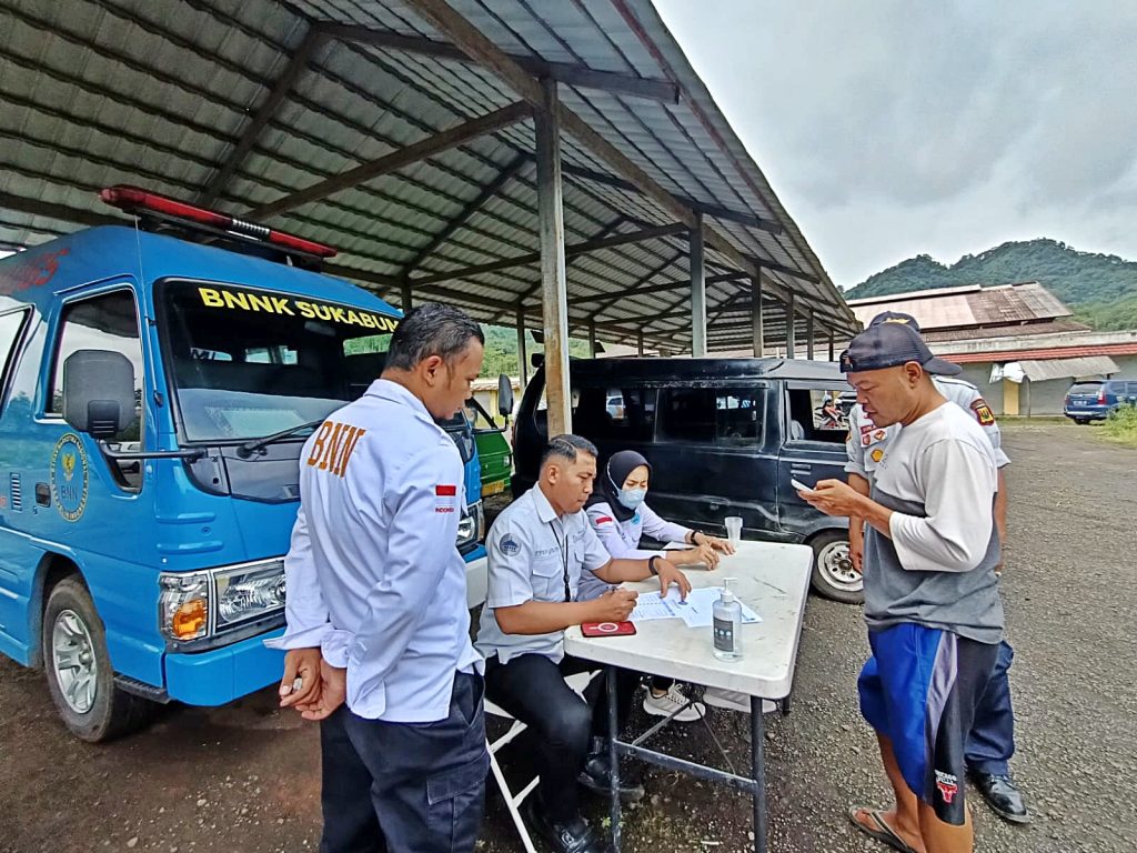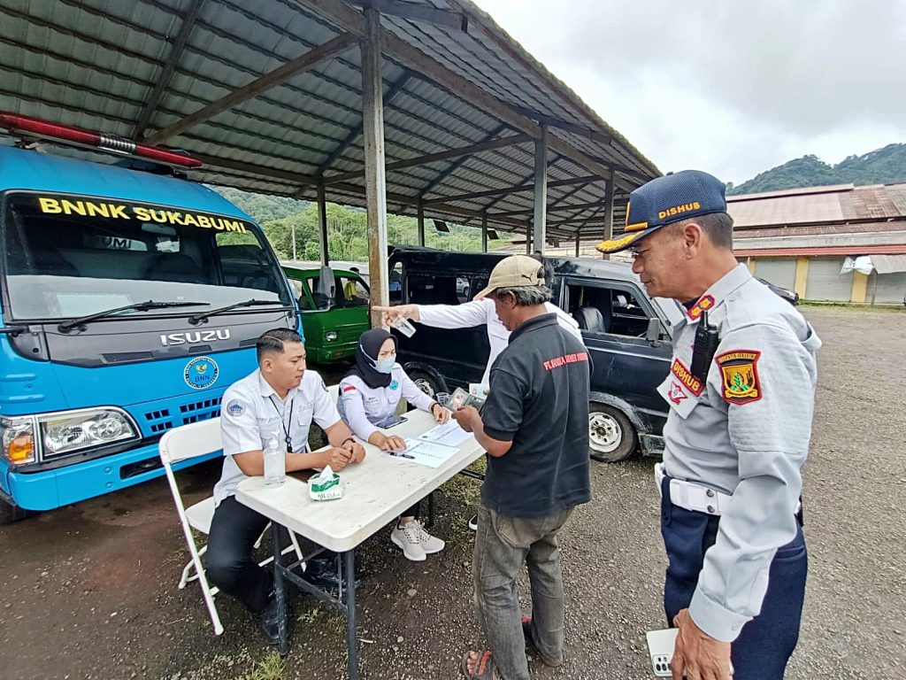 Kepala Seksi Rehabilitasi BNNK Sukabumi, Bambang Sutedjo mengatakan dalam rangka kesiapan dan kelayakan angkutan pengemudi di terminal jubleg, BNNK Sukabumi bersama Dishub Kabupaten Sukabumi dan Polres Sukabumi Kota melaksanakan tes urine sekaligus memberikan sosialisasi P4GN (Pencegahan,Pemberantasan,Penyalahgunaan dan Peredaran Gelap Narkotika) bagi awak kendaraan umum dan Bus.