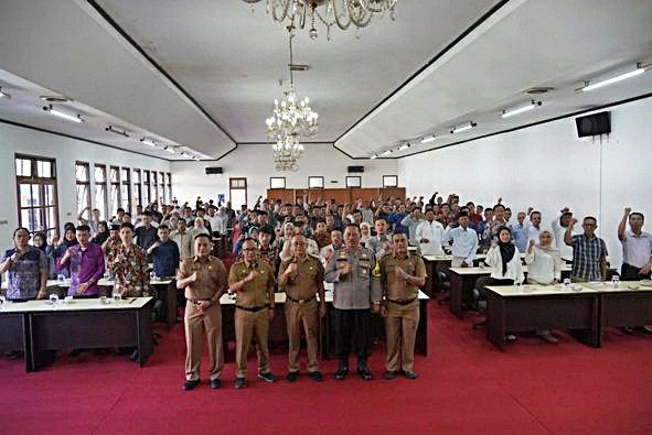 Wakil Bupati Sukabumi Iyos Somantri dalam arahannya mengingatkan para Panitia Pemilihan Kepala Desa (Pilkades) dan Panitia Pengawas untuk bekerja sesuai aturan. Hal tersebut demi kondusifitas pelaksanaan Pilkades serentak di Kabupaten Sukabumi.