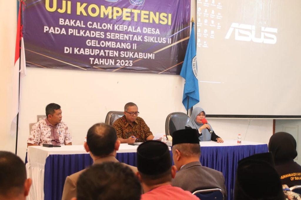 Kegiatan yang dilaksanakan oleh Panitia Pilkades Serentak Kabupaten Sukabumi, dibuka Bupati Sukabumi Marwan Hamami, didampingi Plt. Asisten Daerah Pemkesra, Kepala DPMD, Ketua STISIP Widyapuri Mandiri Sukabumi, para Penguji dan Pengawas Uji Kompetensi Bakal Calon Kepala Desa Serentak.