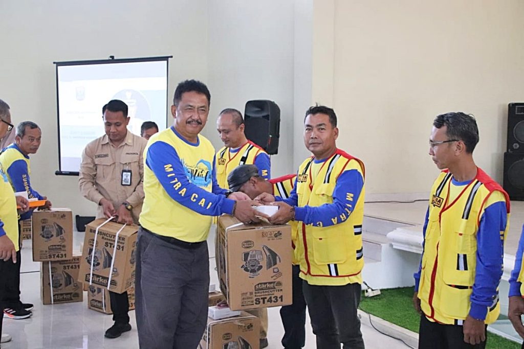 Pada kesempatan tersebut, Bupati Sukabumi dan Kepala Dinas PU menyerahkan bantuan alat Komunikasi HP kepada 156 mitra cai untuk memanfaatkan teknologi dalam komunikasi sesama mitra cai yang ada di Kab Sukabumi, serta penyerahan 44 buah Alat Mesin Pemotong Rumput.