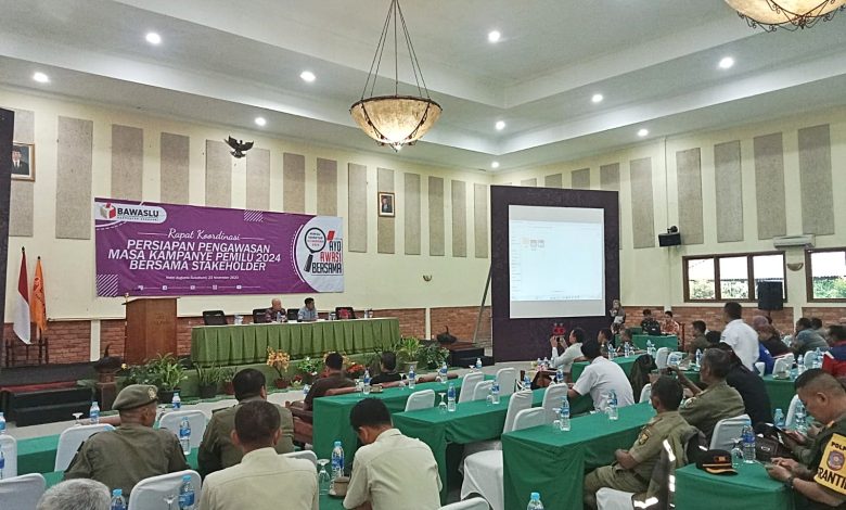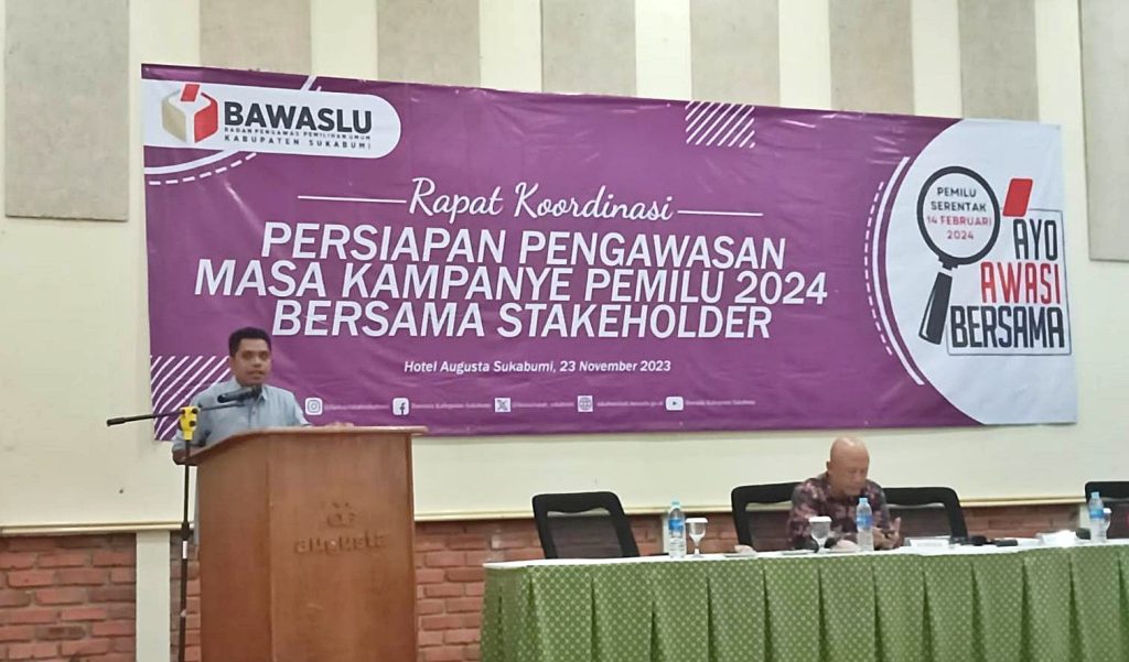 Radio Elmitra News – Badan Pengawas Pemilu (Bawaslu) Kabupaten Sukabumi menggelar Rapat Koordinasi Persiapan Pengawasan Masa Kampanye Pemilu 2024 bersama Stakeholder, bertempat di Hotel Augusta Cikukulu, Sukabumi, Kamis (23/11/2023).