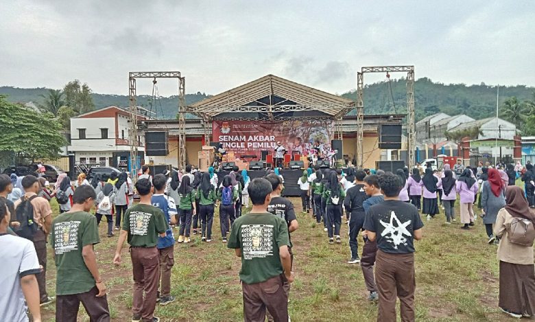 Radio Elmitra News – Komisi Pemilihan Umum (KPU) Kabupaten Sukabumi menggelar Senam Akbar Jingle Pemilu 2024 di Lapang Sekarwangi Cibadak, Sukabumi, Sabtu (25/11/2023).