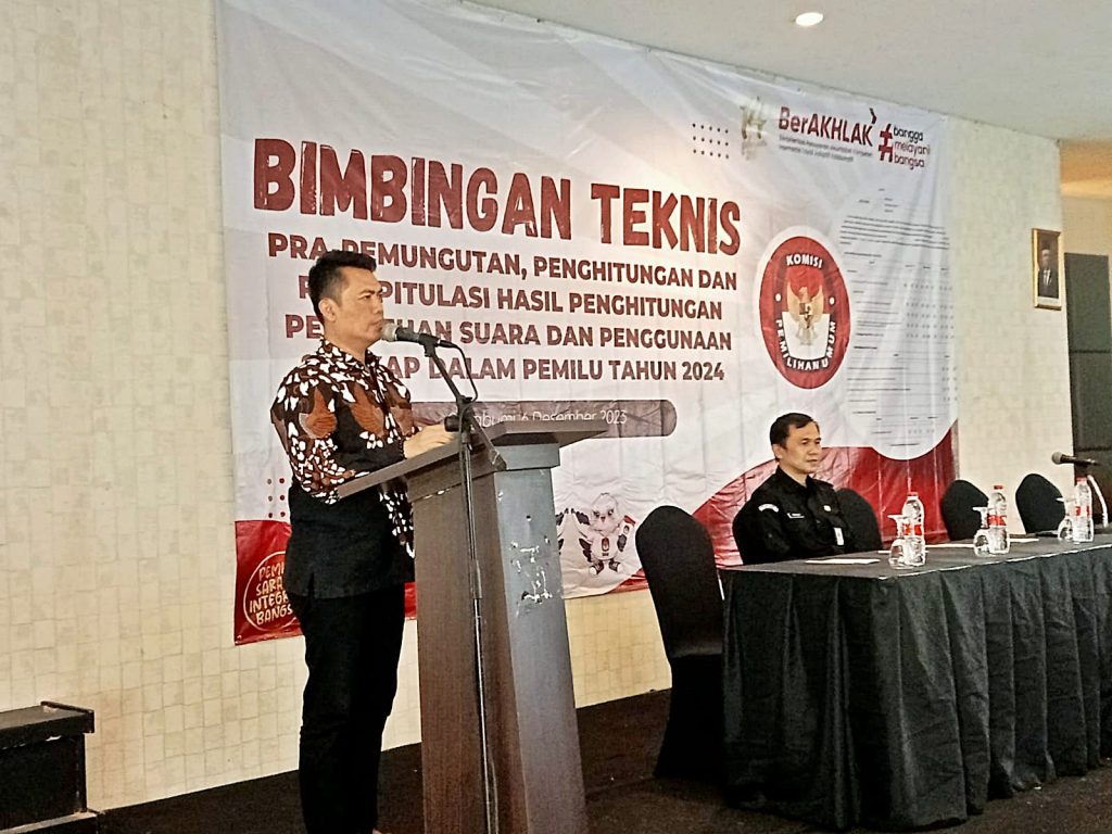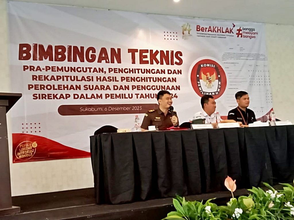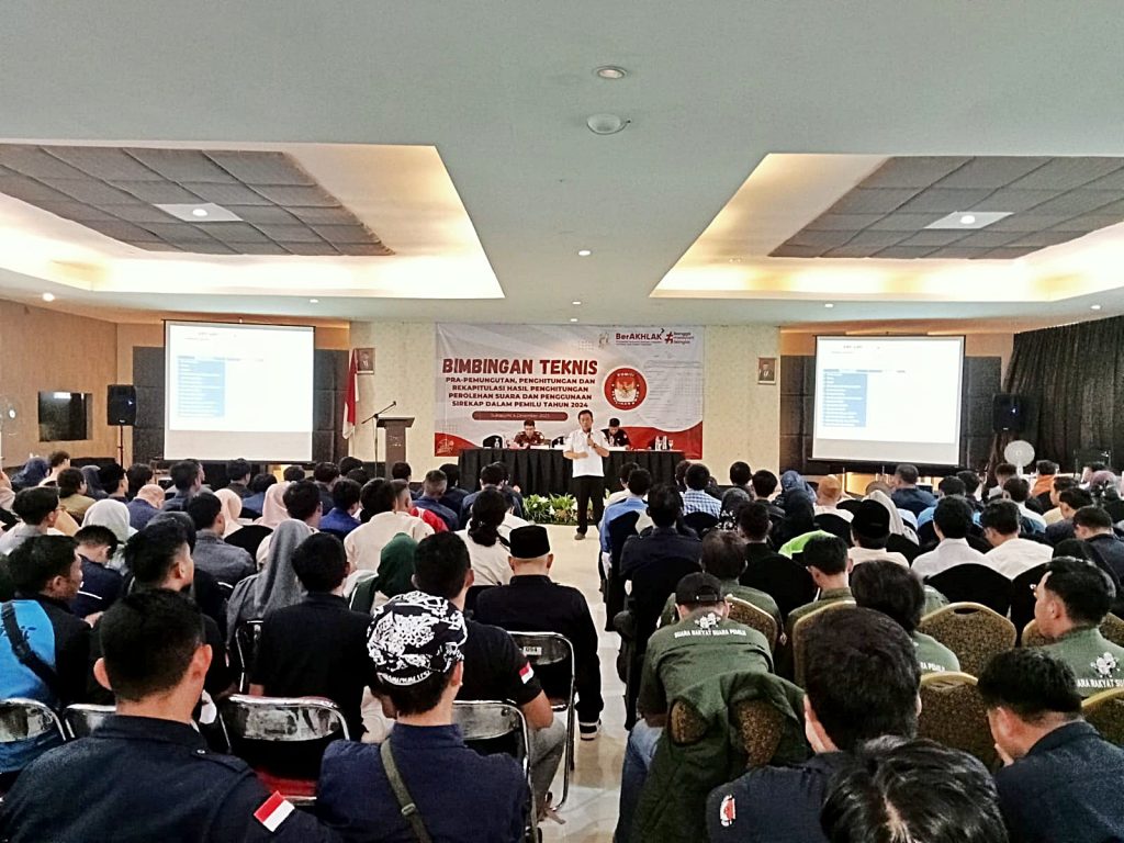 Radio Elmitra News – Komisi Pemilihan Umum (KPU) Kabupaten Sukabumi menyelenggarakan Bimbingan Teknis Pra Pemungutan, Penghitungan dan Rekapitulasi Hasil Penghitungan  Perolehan Suara dan Penggunaan Sirekap dalam Pemilu tahun 2024.