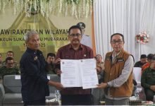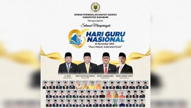 “nanti di tanggal 2 Januari dalam rangkaian hari Amal Bakti juga kita akan menyerahkan satyalancana karya Satya, baik 10, 20 dan 30 tahun, bertempat di KPDA Kementerian Agama Kabupaten Sukabumi”.