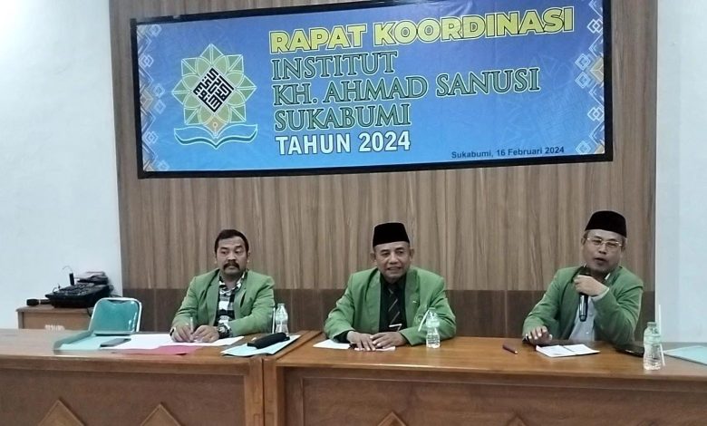 Radio elmitra news – Rektor Institut KH. Ahmad Sanusi Sukabumi (INKHAS), Dr. H. A. Suganda, M.Ag, memberikan paparan kepada seluruh jajaran INKHAS tentang Visi, Misi dan Program Unggulan INKHAS dalam kegaiatan Rapat Koordinasi, Jum’at (16/02/2023) bertempat di Pondok Pesantren Syamsul’Ulum Gunungpuyuh Kota Sukabumi
