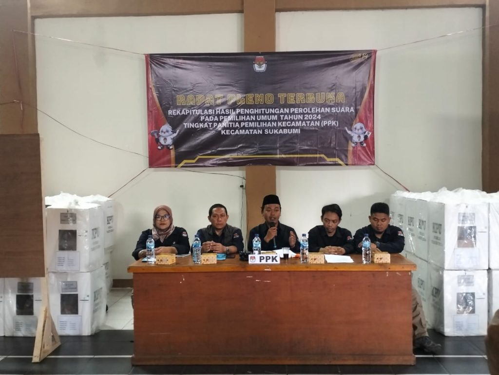 Pengawasan Rapat Pleno terbuka Rekapitulasi hasil Perolehan Suara pada Pemilu Tahun 2024 dihadiri oleh Forkopincam, Para kades Sekecamatan Sukabumi, PPK Kecamatan Sukabumi, PPS se- Kecamatan, Panwaslu Kecamatan Sukabumi, Para Tim Sukses Peserta Pemilu, Para Saksi Peserta Pemilu dan Tokoh masyarakat