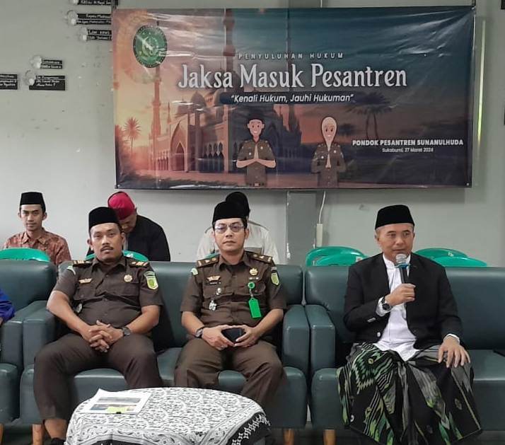 Radio Elmitra News – Kejaksaan Negeri Kabupaten Sukabumi melaksanakan “Jaksa Masuk Pesantren” program penyuluhan hukum dilingkup pendidikan, kegiatan berlangsung di Pondok Pesantren Sunanul Huda, Rabu (27/03/2024).