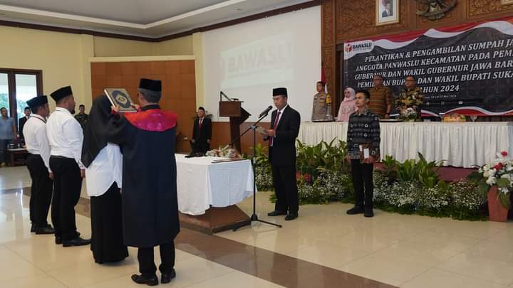 Prosesi pelantikan yang dilakukan Badan Pengawas Pemilu (Bawaslu) Kabupaten Sukabumi ini, dihadiri Bupati Sukabumi Marwan Hamami, Ketua DPRD Kabupaten Sukabumi Yudha Sukmagara, Anggota Bawaslu Provinsi Jawa Barat, unsur Forkopimda dan 141 Anggota Panwaslucam.
