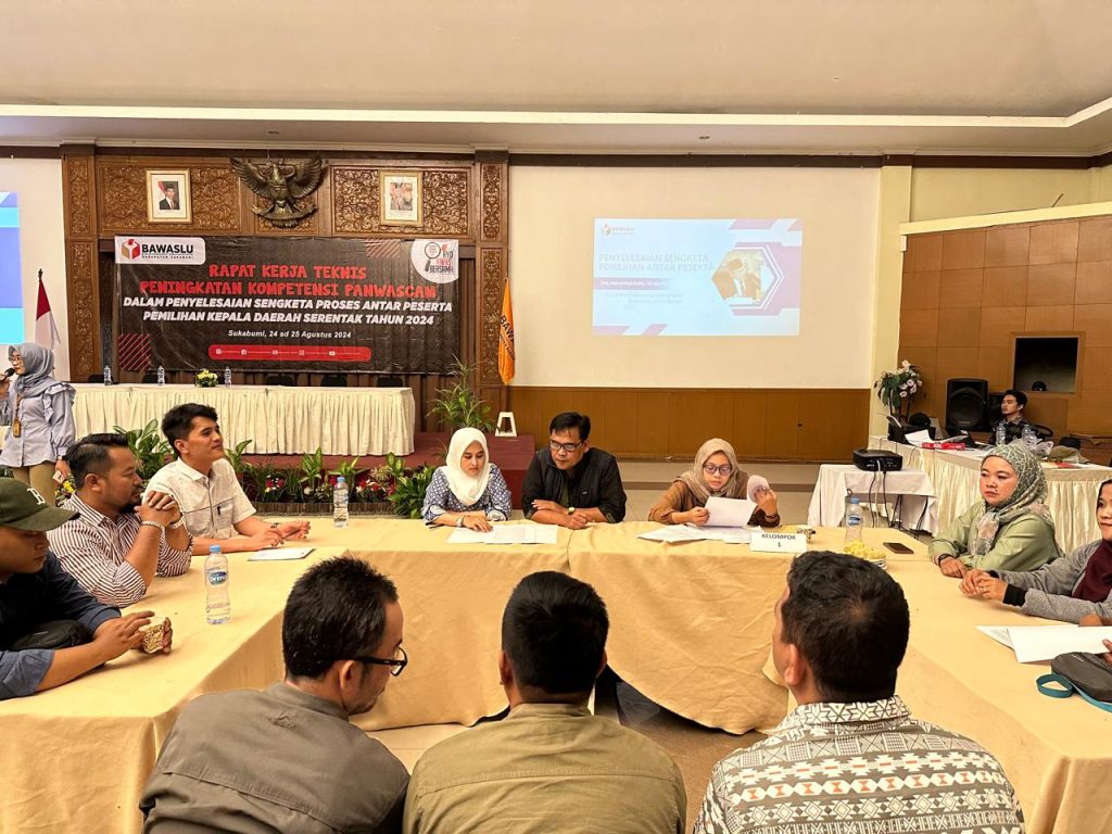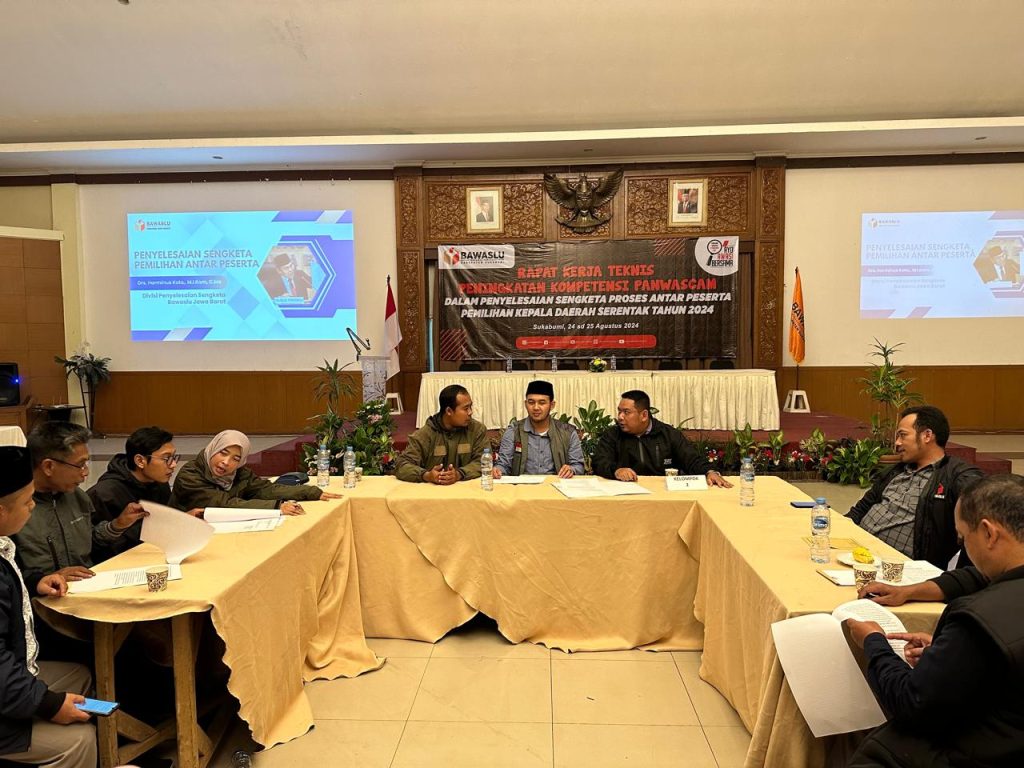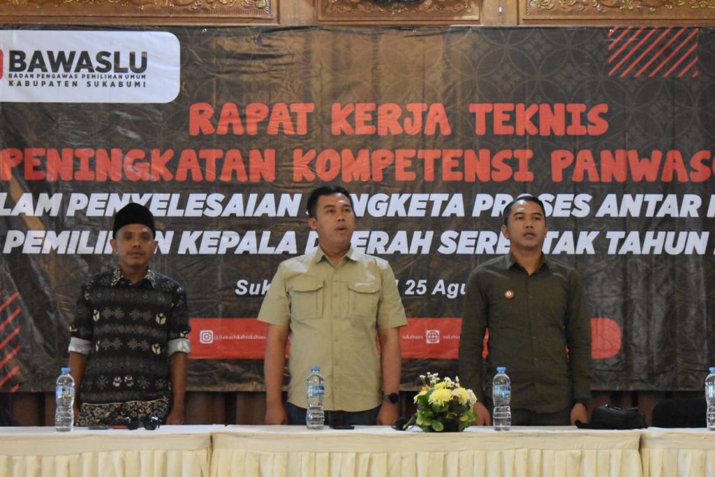 Radio Elmitra News – Badan Pengawas Pemilu (Bawaslu) Kabupaten Sukabumi menggelar Rapat Kerja Teknis Peningkatan Kompetensi Panwascam dalam Penyelesaian Sengketa Proses Antar Peserta Pemilihan Kepala Daerah Serentak Tahun 2024.