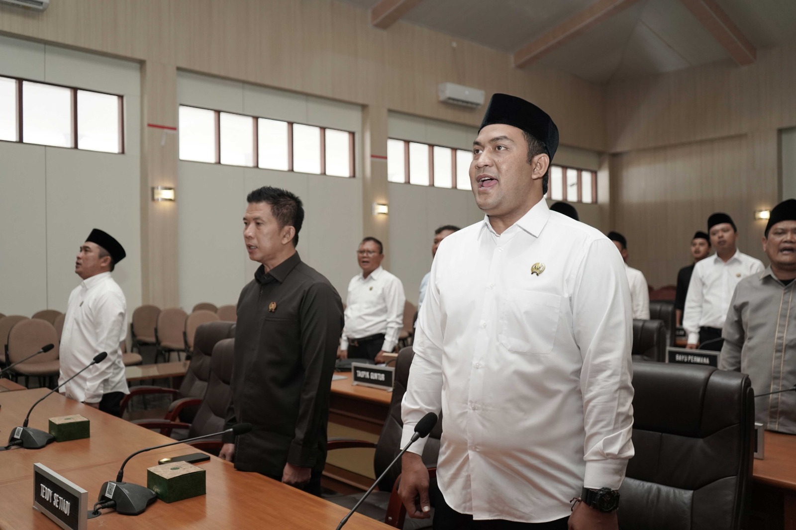 Rapat Paripurna Dewan Perwakilan Rakyat Daerah Kabupaten Sukabumi dipimpin oleh Ketua sementara DPRD Ferry Supriyadi, dengan dihadiri oleh para Anggota DPRD berjumlah 40 orang, tidak mengikuti paripurna karena sakit sebanyak 3 orang dan karena izin sebanyak 5 orang.