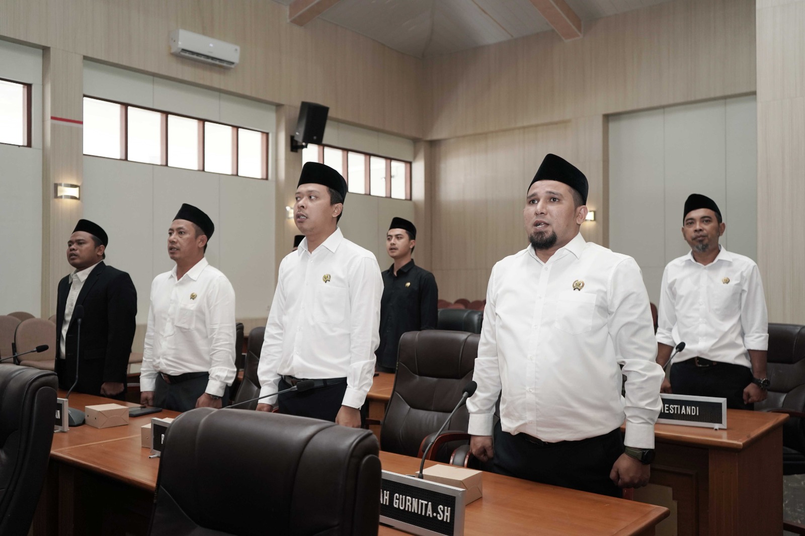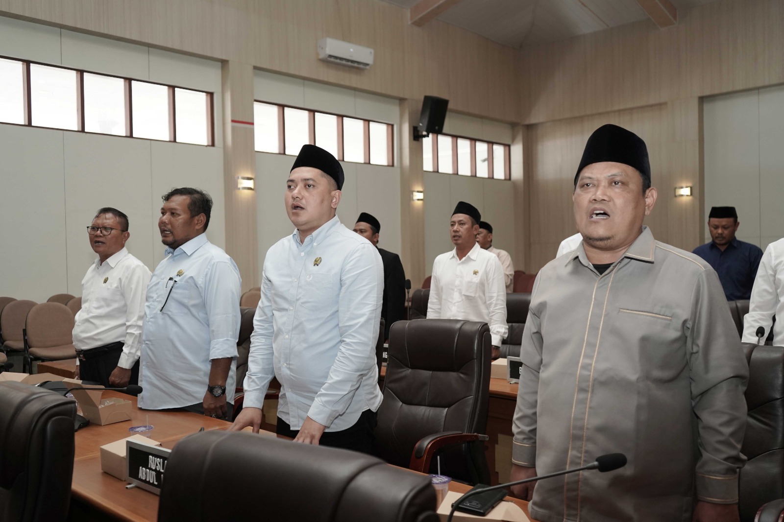 Selanjutnya Pimpinan sementara DPRD menginformasikan bahwa penyusunan Rancangan Peraturan DPRD tentang Tata Tertib, Kode Etik dan Tata Beracara Badan Kehormatan pada Rapat Gabungan Anggota DPRD telah disepakati, untuk dibentukan Tim Penyusun Rancangan Peraturan DPRD tentang Tata Tertib, Kode Etik dan Tata Beracara Badan Kehormatan, yang keanggotaanya berasal dari utusan Fraksi-Fraksi, dari usulan Ke-7 (tujuh) Fraksi yang telah diterima oleh Pimpinan Sementara, untuk keanggotaan Tim Penyusun, adalah sebagai berikut Fraksi Partai Golkar H. M LOKA TRESNAJAYA, SE., Fraksi Gerindra TEDDY SETIADI, Fraksi PKB BAYU PERMANA, Fraksi PKS Hj. LENI LIAWATI, S.Si., Fraksi PDI-P PAOJI, S.E., Fraksi Demokrat JALIL ABDILLAH, S.IP., Fraksi PPP H. ANDRI HIDAYANA