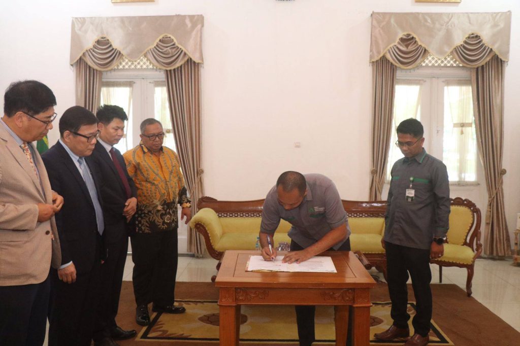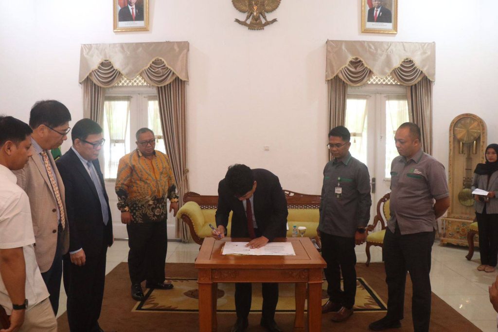 Dalam prosesi penandatanganan tersebut, disaksikan langsung Bupati Sukabumi Marwan Hamami.