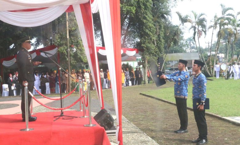 Bertindak selaku Inspektur Upacara, Dandim 0622 Letkol Kav Andhi Ardana Valeriandra, dan Ketua DPRD Kabupaten Sukabumi Budi Azhar Mutawali membacakan pesan pesan Pahlawan.