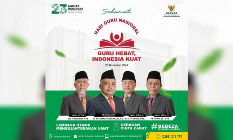Radio Elmitra News – Badan Amil Zakat Nasional (Baznas) Kabupaten Sukabumi Mengucapkan Selamat Memperingati Hari Guru Nasional (25 November 2024) “Guru Hebat, Indonesia Kuat”
