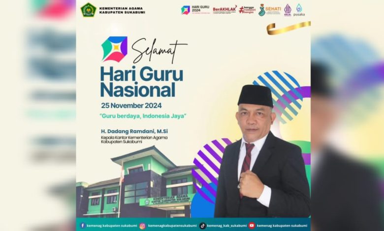 Radio Elmitra News – Kepala Kantor Kementerian Agama (Kemenag) Kabupaten Sukabumi Mengucapkan Selamat Memperingati Hari Guru Nasional (25 November 2024) “Guru Berdaya, Indonesia Jaya”