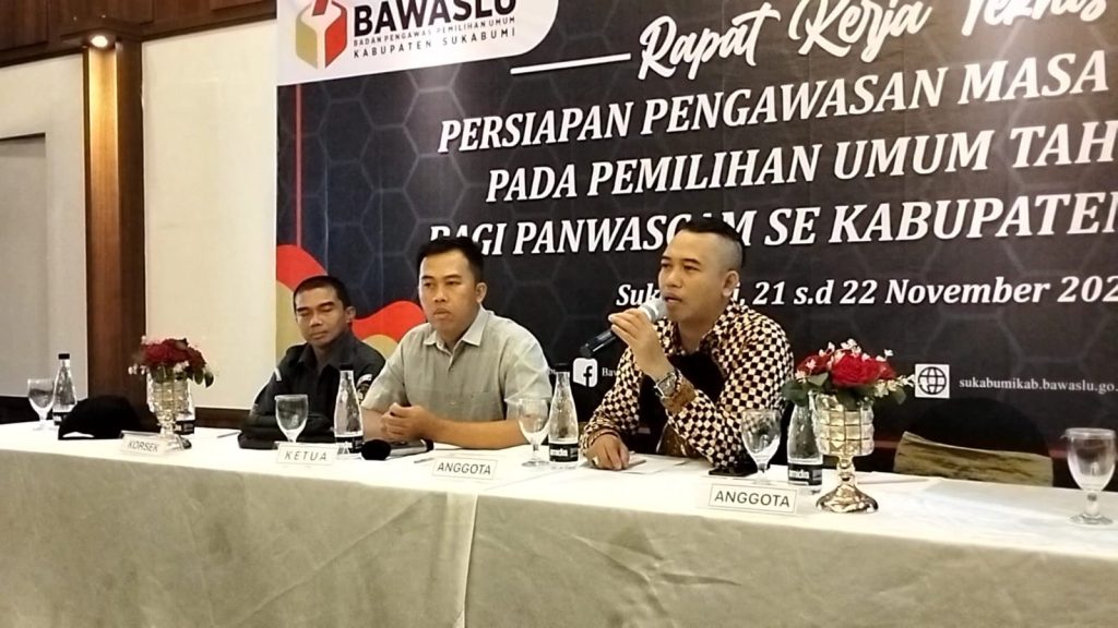 Radio elmitra news – Badan Pengawas Pemilu (Bawaslu) Kabupaten Sukabumi melaksanakan Rapat KerjaTeknis Persiapan Pengawasan Masa Kampanye Pada Pemeilihan Umum Tahun 2024 bagi Panwascam Se – Kabupaten Sukabumi, Selasa (21/11/2023) di Balroom Hotel Anugerah