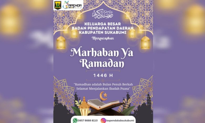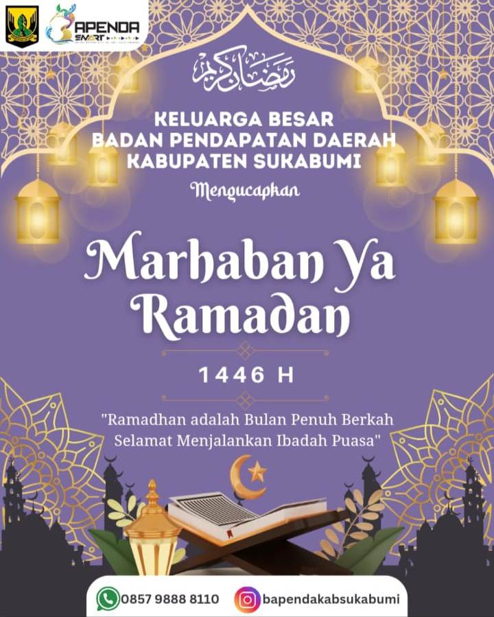 Elmitra News – Keluarga Besar Badan Pendapatan Daerah (Bapenda) Kabupaten Sukabumi mengucapkan mengucapkan “Marhaban Ya Ramadhan”, Selamat Menunaikan Ibadah Puasa Ramadhan 1446H/2025M