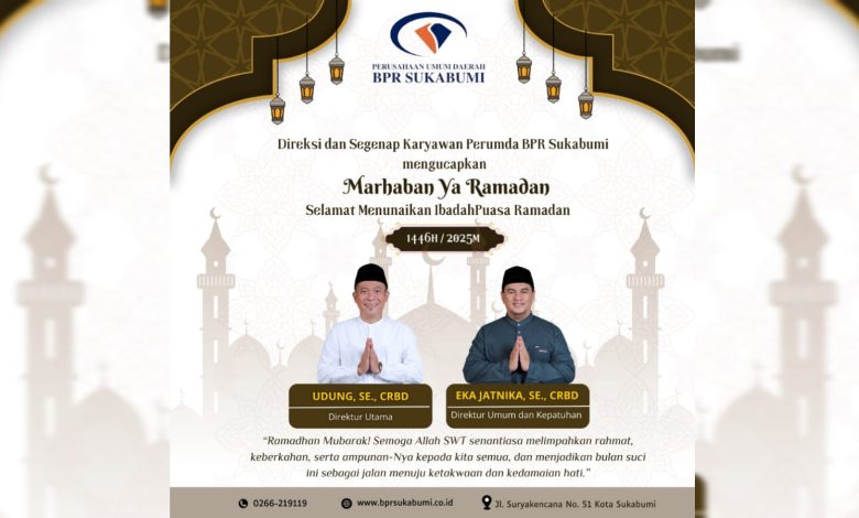 Elmitra News – Direksi dan Segenap Karyawan Perumda BPR Sukabumi mengucapkan “Marhaban Ya Ramadhan”, Selamat Menunaikan Ibadah Puasa Ramadhan 1446H/2025M
