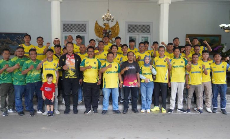 Elmitra News – Bupati Sukabumi Asep Japar didampingi Ketua DPRD Budi Azhar Mutawali melepas tim sepakbola Persikabumi untuk mengikuti kompetisi liga 4 putaran nasional 2024/2025 di Jember, Jawa Timur. Prosesi pelepasan dilaksanakan di Pendopo Sukabumi, Minggu (20/04/2025).