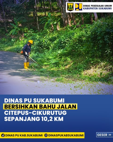 Elmitra News – Upaya menjaga kenyamanan dan keselamatan pengguna jalan terus dilakukan Dinas Pekerjaan Umum (PU) Kabupaten Sukabumi. Kali ini, pembersihan bahu jalan dilakukan di sepanjang ruas Citepus-Cikurutug, Kecamatan Palabuhanratu, Rabu (07/05/2025).