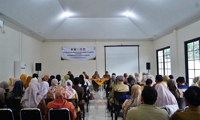 Elmitra News – Dalam rangka memperingati Hari Keluarga Nasional (HARGANAS) ke-32, Dinas Pengendalian Penduduk dan Keluarga Berencana (DPPKB) Kabupaten Sukabumi menggelar kegiatan Sosialisasi Kesehatan Reproduksi bagi Guru dan Tenaga Kependidikan jenjang SLTA se-Wilayah V Kota dan Kabupaten Sukabumi. Kegiatan ini dilaksanakan di Kantor Cabang Dinas (KCD) Pendidikan Wilayah V, dan diikuti oleh 60 peserta dari kalangan pendidik, pada Senin (23/06/2025).