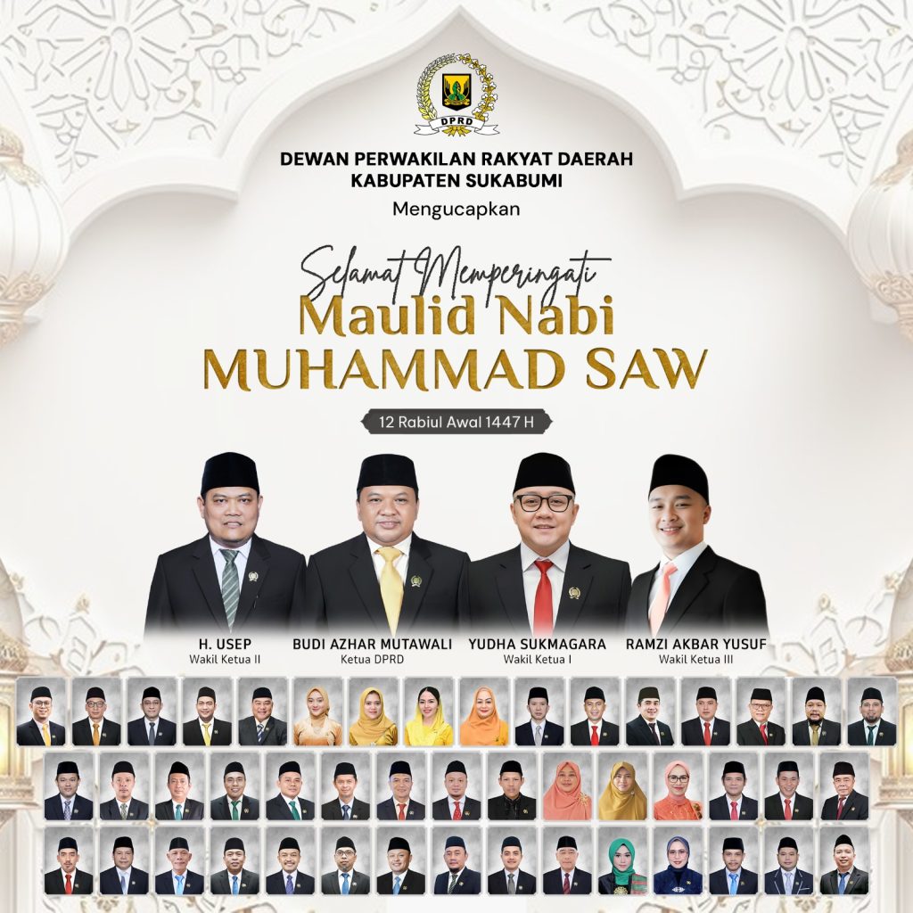 Elmitra News – Dewan Perwakilan Rakyat Daerah (DPRD) Kabupaten Sukabumi Mengucapkan Selamat Memperingati Maulid Nabi Muhammad SAW (12 Rabiul Awal 1447 H)