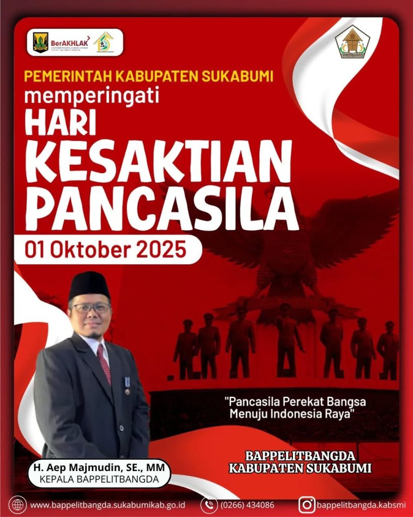 Elmitra News – Badan Perencanaan Pembangunan, Penelitian dan Pengembangan Daerah (Bappelitbangda) Kabupaten Sukabumi Mengucapkan Selamat Memperingati Hari Kesaktian Pancasila (01 Oktober 2025)