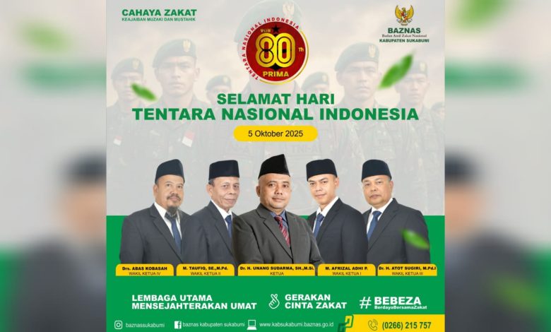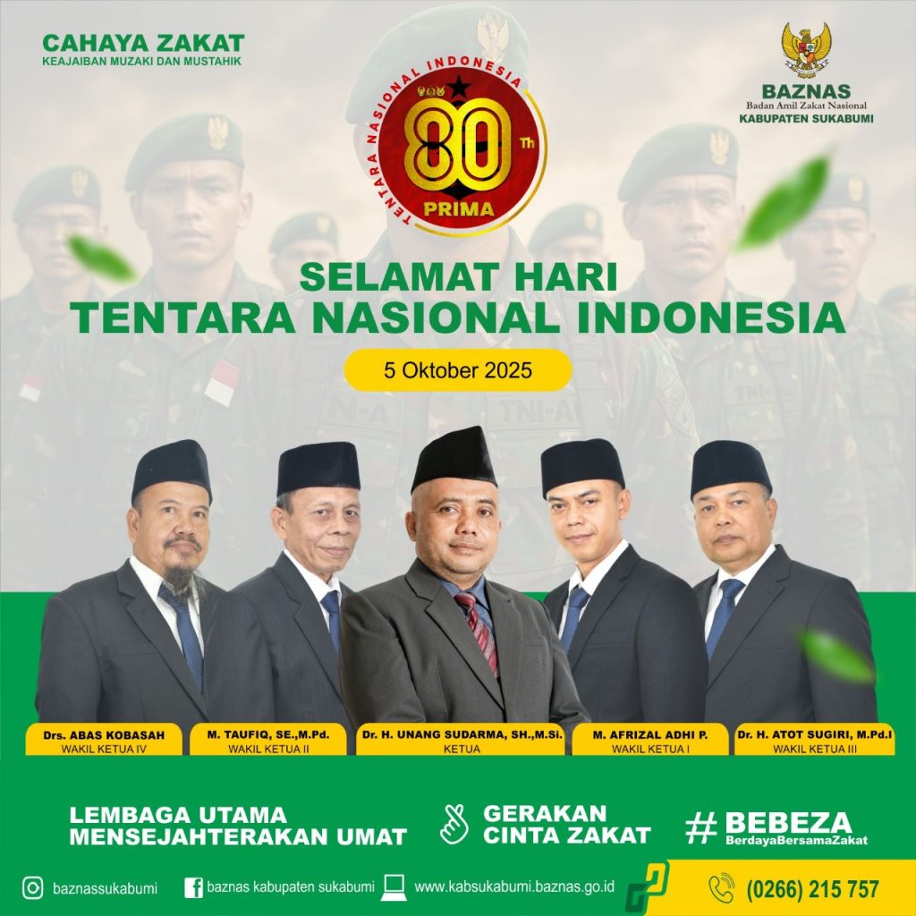 Elmitra News – Badan Amil Zakat Nasional (Baznas) Kabupaten Sukabumi Mengucapkan Selamat Hari Tentara Nasional Indonesia Ke-80 (05 Oktober 2025)