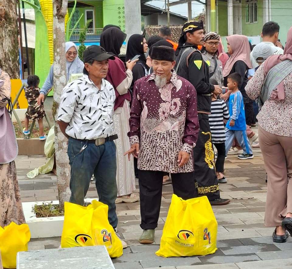 Direktur Umum dan Fungsi Kepatuhan BPR Sukabumi Eka Jatnika menjelaskan pembagian paket sembako ini sebagai wujud rasa syukur BPR Sukabumi dalam HUT ke-21 pada 12 Oktober 2025, yang mengusung tema “Bersinergi Bersama”.