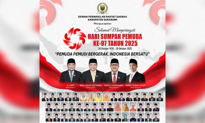 Elmitra News – Dewan Perwakilan Rakyat Daerah (DPRD) Kabupaten Sukabumi Mengucapkan Selamat Memperingati Hari Sumpat Pemuda ke-97 tahun 2025 (28 Oktober 1928 – 28 Oktober 2025)