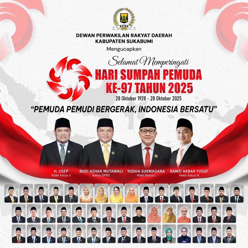Elmitra News – Dewan Perwakilan Rakyat Daerah (DPRD) Kabupaten Sukabumi Mengucapkan Selamat Memperingati Hari Sumpat Pemuda ke-97 tahun 2025 (28 Oktober 1928 – 28 Oktober 2025)