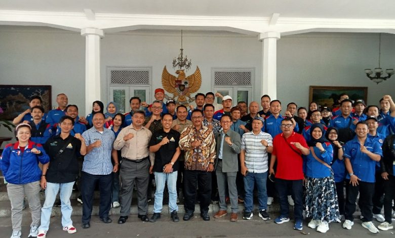 Elmitra News – Bupati Sukabumi Asep Japar, didampingi Kepala Disnakertrans Sigit Widarmadi dan Kepala Bakesbangpol Jujun Juaeni berkumpul dengan pengurus dan anggota Lembaga Kerjasama (LKS) Tripartit di Pendopo Sukabumi, Kamis (30/10/2025).