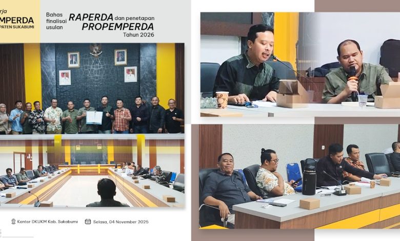 Elmitra News – Badan Pembentukan Peraturan Daerah (Bapemperda) DPRD Kabupaten Sukabumi menggelar Rapat Kerja terkait pembahasan finalisasi usulan Rancangan Peraturan Daerah (Raperda) yang akan ditetapkan dalam Program Pembentukan Peraturan Daerah (Propemperda) Tahun 2026. rapat digelar di kantor DKUKM pada Selasa, (04/11/2025).