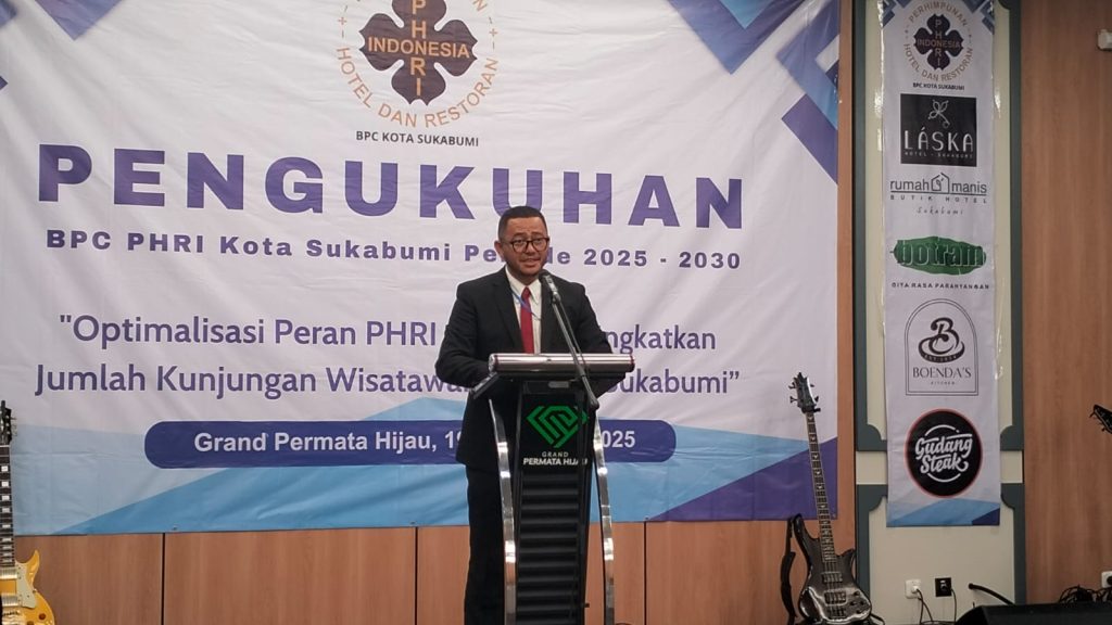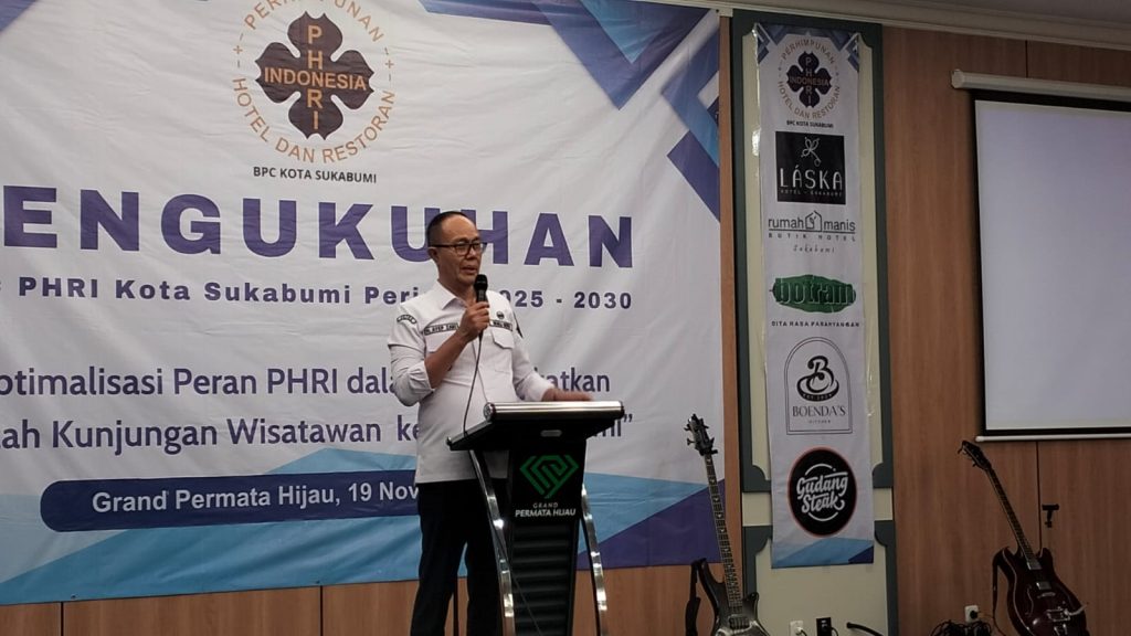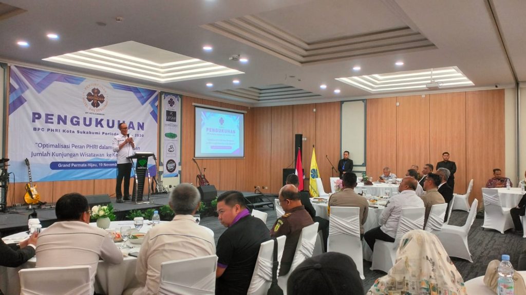 Pelantikan dengan tema “Optimalisasi Peran PHRI dalam Meningkatkan Jumlah Kunjungan Wisatawan ke Kota Sukabumi” tersebut berlangsung di Hotel Grand Permata Hijau, Rabu (19/11/25).