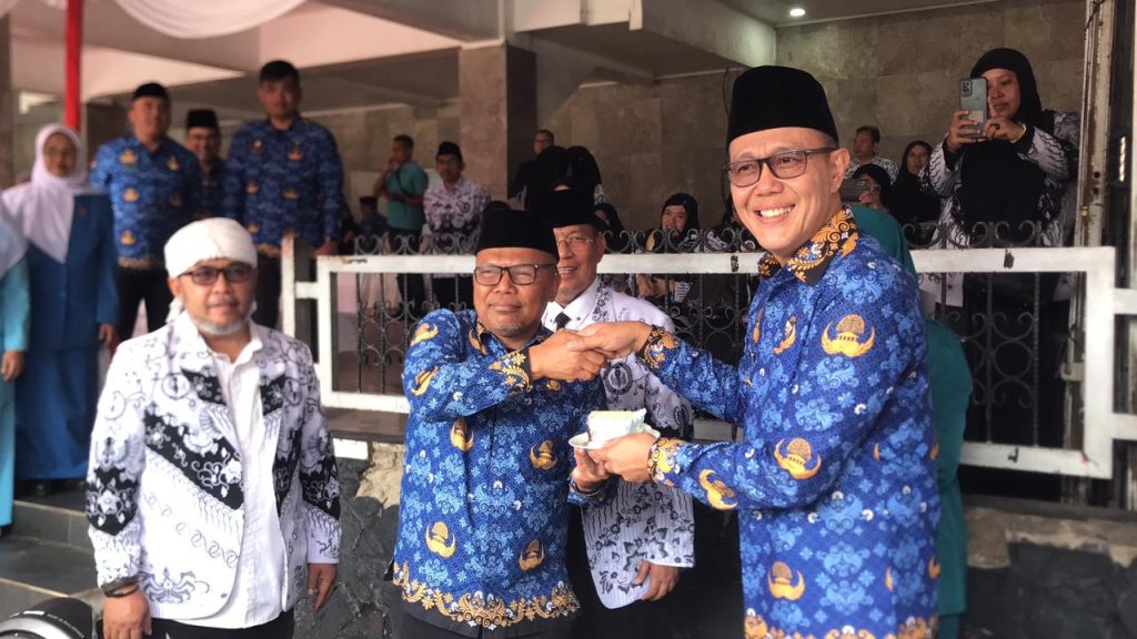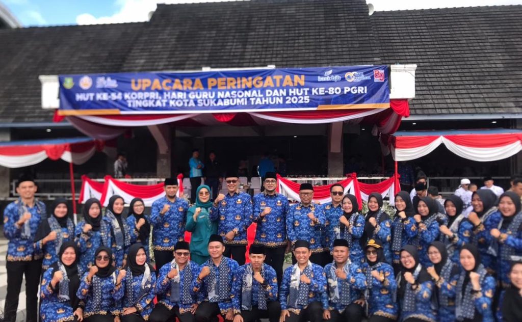Elmitra News – Pemerintah Kota Sukabumi menggelar upacara peringatan Hari Ulang Tahun (HUT) ke 54 Korps Pegawai Republik Indonesia (Korpri) yang dirangkaikan dengan peringatan Hari Guru Nasional dan HUT ke 80 Persatian Guru Republik Indonesia (PGRI) di Lapangan Merdeka, Senin (01/12/2025).