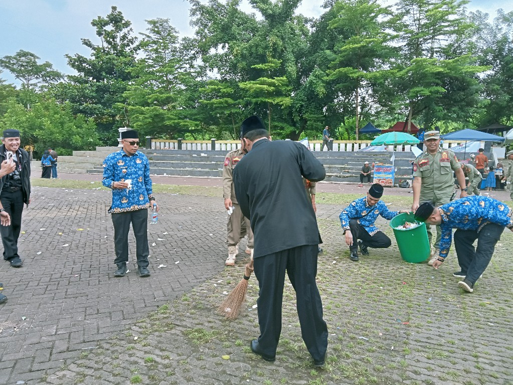 Demi Jaga Kenyamanan Lapang Cangehgar, Bupati Turun Langsung Bersihkan Sampah Pasca Pelantikan PPPK Paruh Waktu