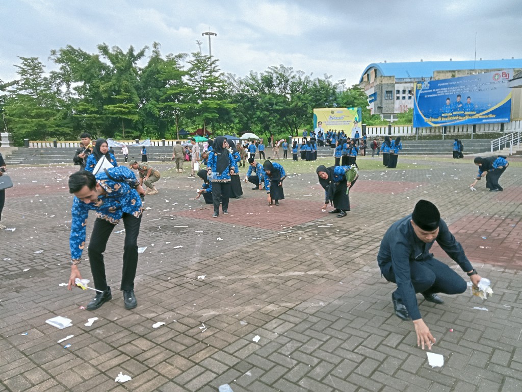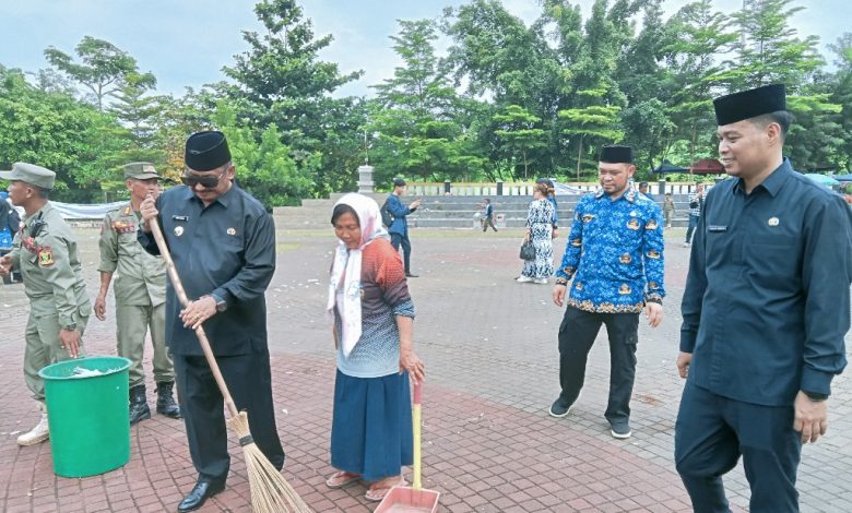 Demi Jaga Kenyamanan Lapang Cangehgar, Bupati Turun Langsung Bersihkan Sampah Pasca Pelantikan PPPK Paruh Waktu