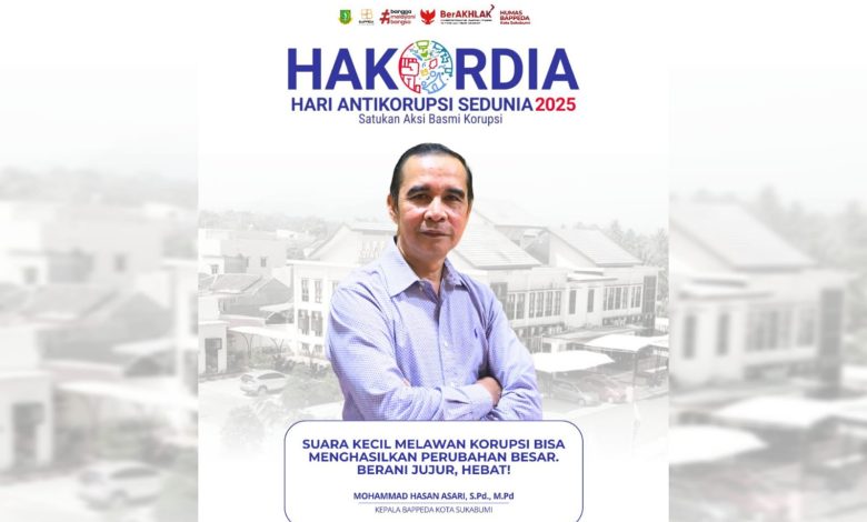Elmitra News – Kepala Bappeda Kota Sukabumi, M. Hasan Asari Mengucapkan Selamat Memperingati Hari Anti Korupsi Sedunia (HAKORDIA) tahun 2025, yang diperingati setiap tanggal 09 Desember.