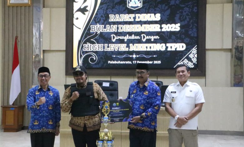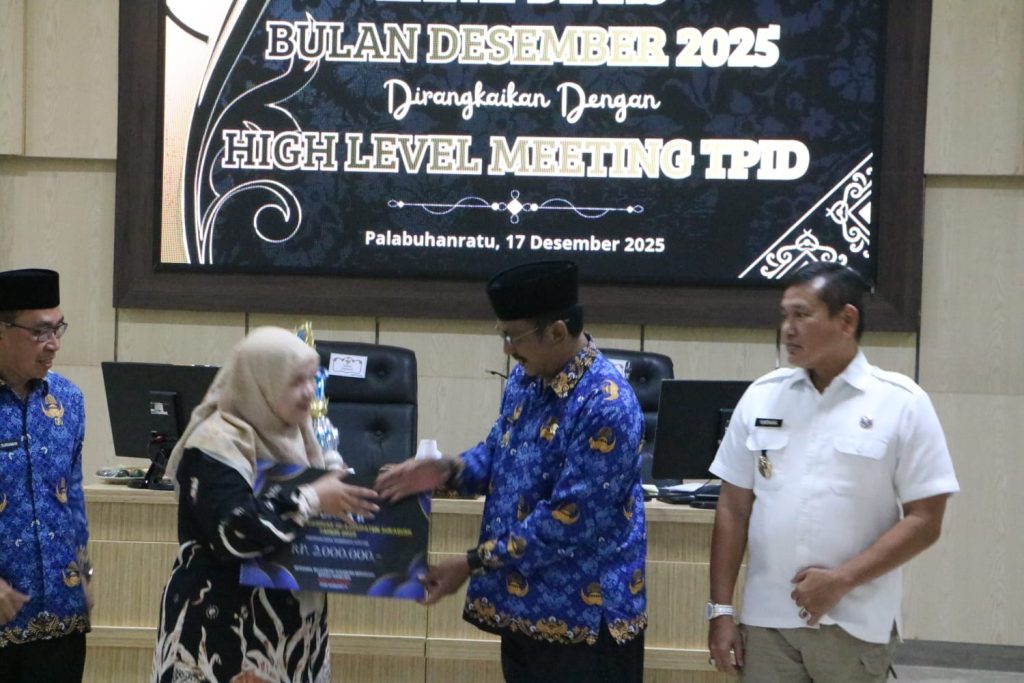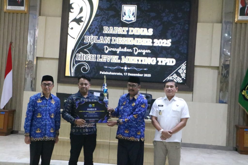 Elmitra News – Bupati Sukabumi Asep Japar, didampingi Kepala Badan Narkotika Nasional (BNN) Kabupaten Sukabumi AKBP Dr. Yuhernawa menyerahkan penghargaan kepada Juara Lomba Desa Bersinar (Bersih Narkoba), di Aula Setda Kabupaten Sukabumi, pada Rabu (17/12/2025).