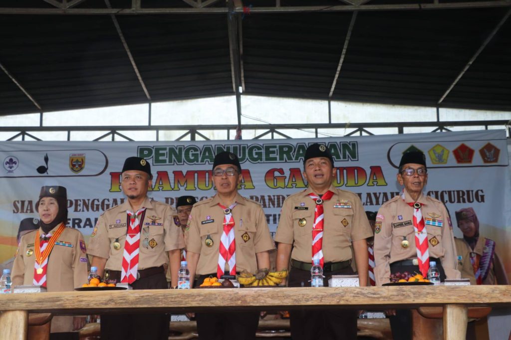 Penganugerahan tanda garuda dilakukan oleh Ketua Kwartir Cabang Gerakan Pramuka Kabupaten Sukabumi, Kak Ade Suryaman kepada anggota Kwartir Ranting se-Wilayah III Cicurug.