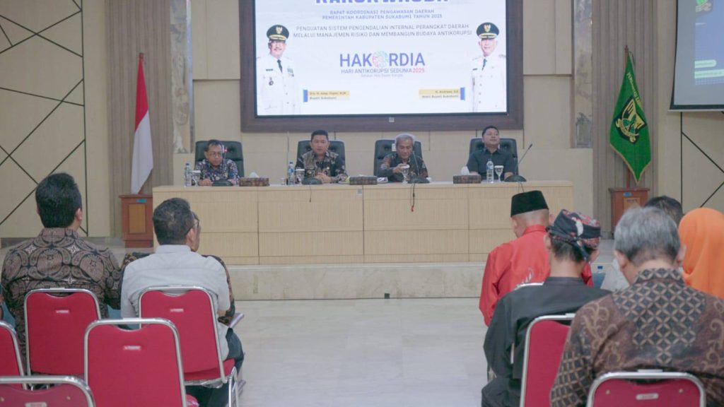 Elmitra News – Wakil Bupati Sukabumi Andreas membuka Rapat Koordinasi Pengawasan Daerah (Rakorwasda) Tahun 2025 sebagai upaya memperkuat sistem pengendalian internal perangkat daerah melalui manajemen risiko serta pembangunan budaya antikorupsi. Kegiatan tersebut dibuka langsung oleh Wakil Bupati Sukabumi Andreas, di Aula Setda Kabupaten Sukabumi, pada Kamis (18/12/2025).