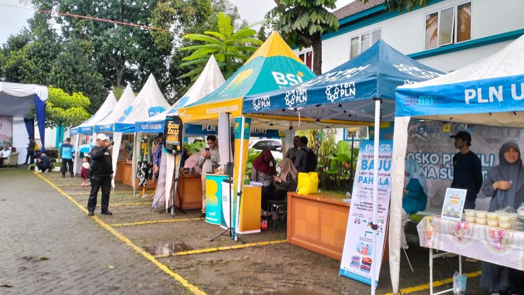 elmitra news – PLN UP3 Sukabumi melalui Persatuan Istri Karyawan-Karyawati (PIKK) PLN dan Yayasan Baitul Maal (YBM) PLN bekerja sama dengan Kamar Dagang dan Industri (KADIN) Kota Sukabumi menggelar kegiatan Semarak Peduli dan UMKM Bangkit di halaman Kantor PLN UP3 Sukabumi, Kamis (18/12/2025).