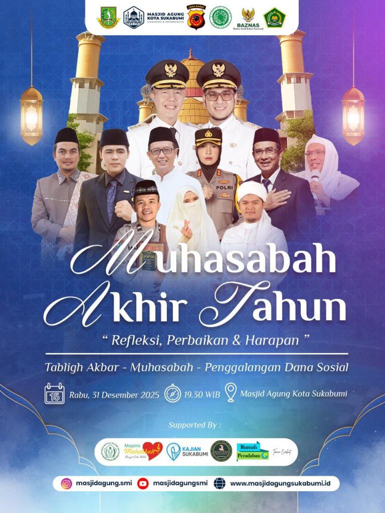 Elmitra News – Pemerintah Kota Sukabumi menggelar kegiatan Muhasabah Akhir Tahun 2025 bertajuk “Refleksi, Perbaikan, dan Harapan” yang dirangkaikan dengan Tabligh Akbar, Muhasabah, serta Penggalangan Dana Sosial, di Masjid Agung Kota Sukabumi, pada Rabu (31/12/2025).