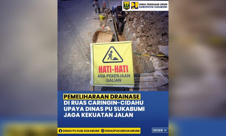 Pemeliharaan Drainase di ruas Caringin – Cidahu, Upaya Dinas PU Sukabumi Jaga Kekuatan Jalan