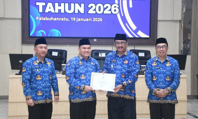 Dalam rapat tersebut, Pemkab Sukabumi menyerahkan penghargaan kepatuhan kinerja tahun 2025 tingkat perangkat daerah diberikan kepada BPKAD, DPPKB, dan Inspektorat. Sementara di tingkat kecamatan, penghargaan diterima Kecamatan Palabuhanratu, Parakansalak, dan Sagaranten.