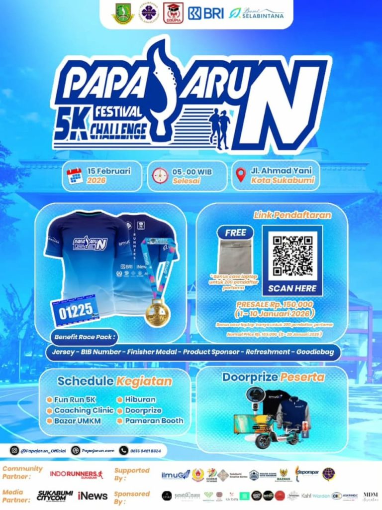 Elmitra News – Dalam rangka melestarikan tradisi papajar, budaya khas masyarakat Sunda di Jawa Barat, khususnya Sukabumi dan Cianjur yang identik dengan kegiatan rekreasi, piknik, serta botram bersama keluarga dan kerabat menjelang bulan suci Ramadhan, Perhimpunan Hotel dan Restoran Indonesia (PHRI) Kota Sukabumi akan menggelar Papajarun Volume I Festival 5K Challenge pada 15 Februari 2026 mendatang.