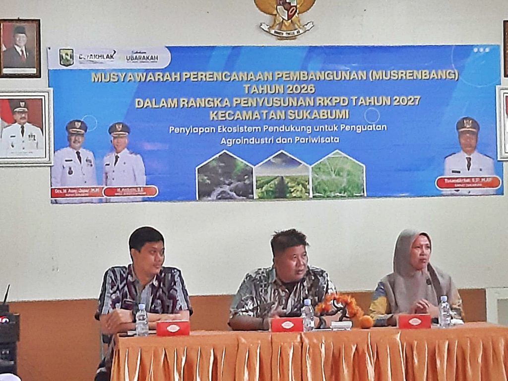 Elmitra News – Pemerintah Kecamatan Sukabumi Kabupaten Sukabumi melaksanakan Musyawarah Perencanaan Pembangunan (Musrenbang) tingkat kecamatan, Dalam Rangka Penyusunan RKPD Tahun 2027, di Aula kecamatan Sukabumi, pada Jumat (13/02/2026).