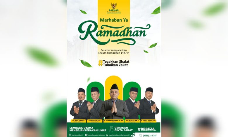 Elmitra News – Badan Amil Zakat Nasional (Baznas) Kabupaten Sukabumi Mengucapkan Marhaban Ya Ramadhan 1447 H