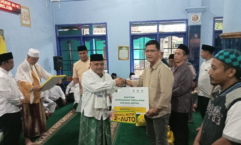 Elmitra News – Badan Amil Zakat Nasional (Baznas) Kabupaten Sukabumi menyalurkan Bantuan Seperangkat Peralatan Bengkel Motor kepada 3 penerima manfaat, dalam rangkaian Muhibah Ramadhan 1447 H/2026 titik ke-3 di Masjid Jami Baiturrahman Jalan Cikaroya Cibolang Kaler Kecamatan Cisaat, Jumat (27/02/2026).