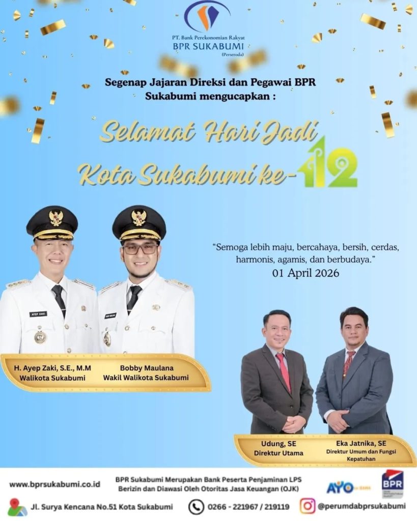 Elmitra News – Segenap Jajaran Direksi dan Pegawai BPR Sukabumi Mengucapkan Selamat Hari Jadi Kota Sukabumi Ke-112 (01 April 2026)